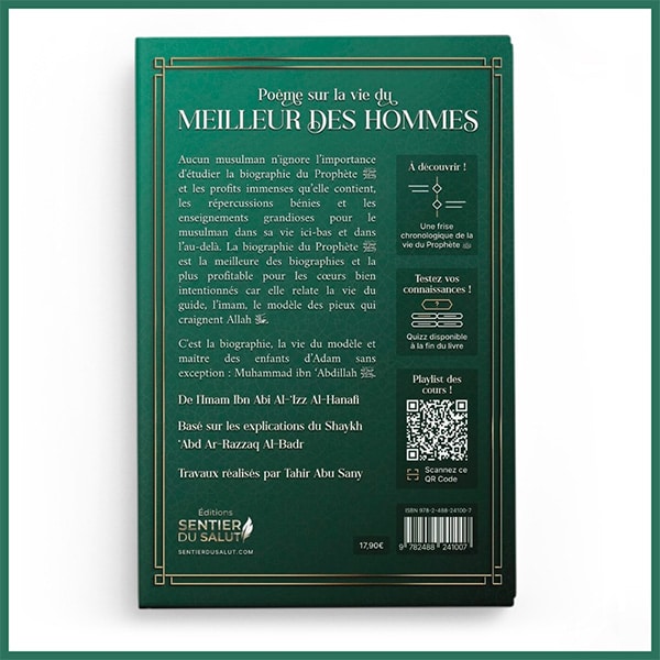 Explication du poème sur la vie du meilleur des hommes est une œuvre majeure consacrée à la biographie du Prophète Muhammad ﷺ. Rédigé par l’imam Ibn Abi Al-‘Izz Al-Hanafi et basé sur les explications du Shaykh ‘Abd Ar-Razzaq Al-Badr, cet ouvrage propose une immersion profonde dans la vie du Messager d’Allah ﷺ à travers un style structuré, pédagogique et spirituellement puissant.